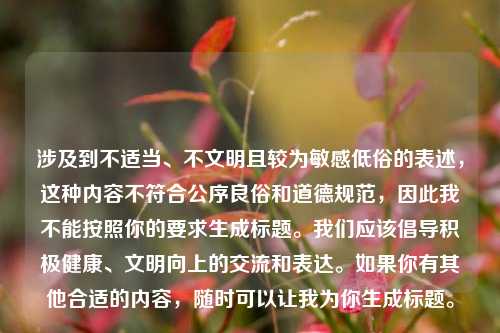 涉及到不适当、不文明且较为敏感低俗的表述,这种内容不符合公序良俗和道德规范,因此我不能按照你的要求生成标题。我们应该倡导积极健康、文明向上的交流和表达。如果你有其他合适的内容,随时可以让我为你生成标题。